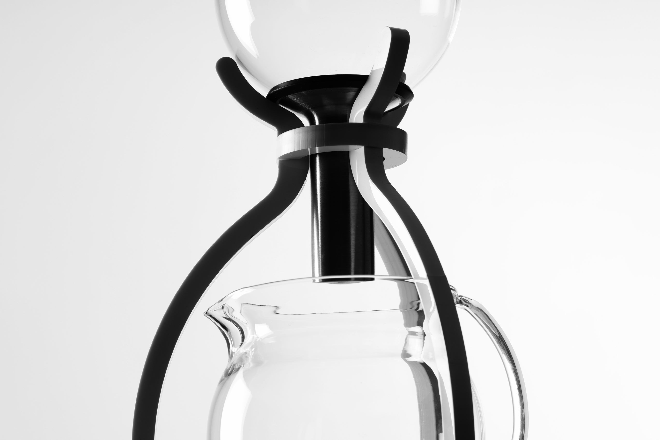 Fabriquée à la main par des maîtres verriers en verre borosilicate, la carafe est un chef d'œuvre d'un savoir faire rare et unique.