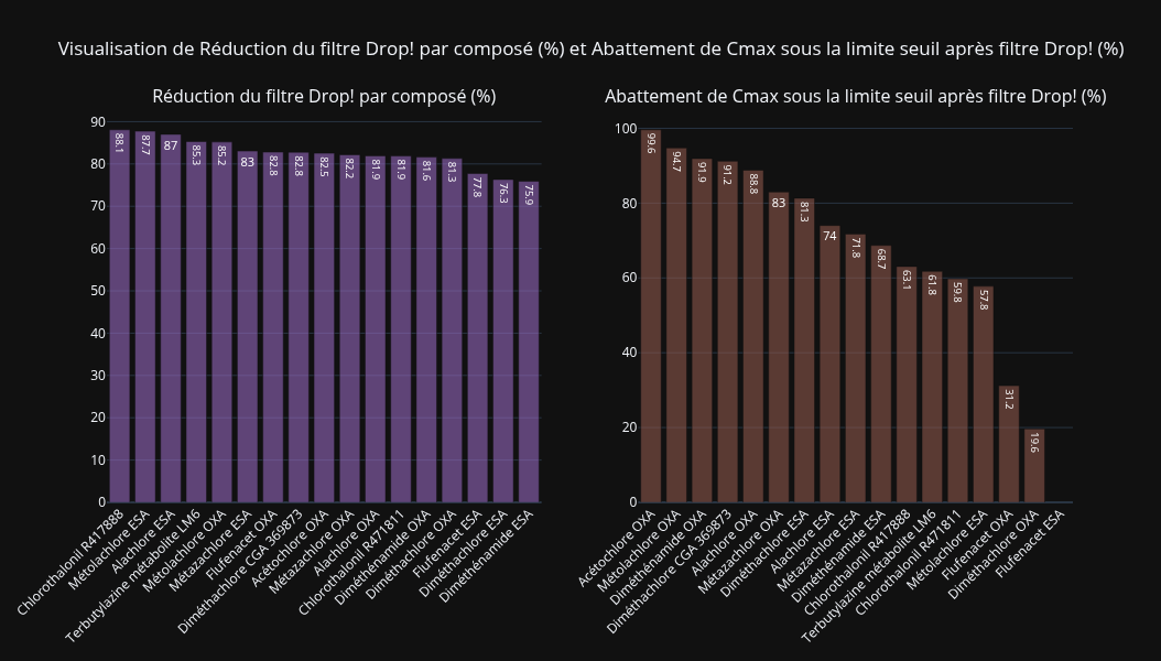 - La réduction de la concentration de chaque pesticide après passage par le filtre Drop!