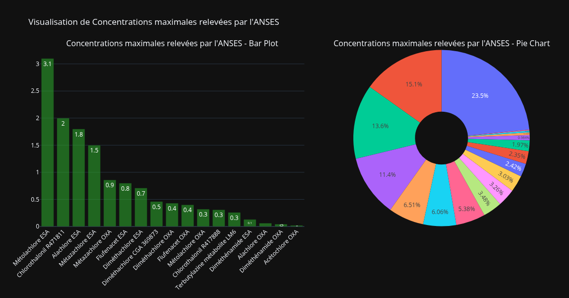 Le rapport de l'ANSES identifie les pesticides les plus problématiques en termes de Cmax (concentration maximale détectée) et de nombre d'échantillons non conformes (c'est-à-dire le nombre d'échantillons au dessus des seuils réglementaires).
